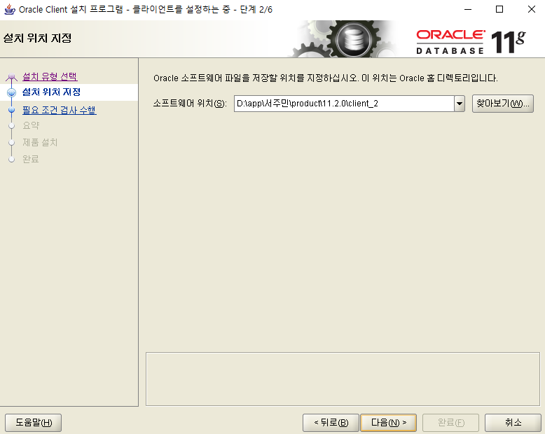 D:\app\서주민\product\11.2.0\client_1 밑에 /network/admin 폴더 디렉터리를 생성하고 해당 폴더 안에 DB 설정 관련 파일을 생성한다.